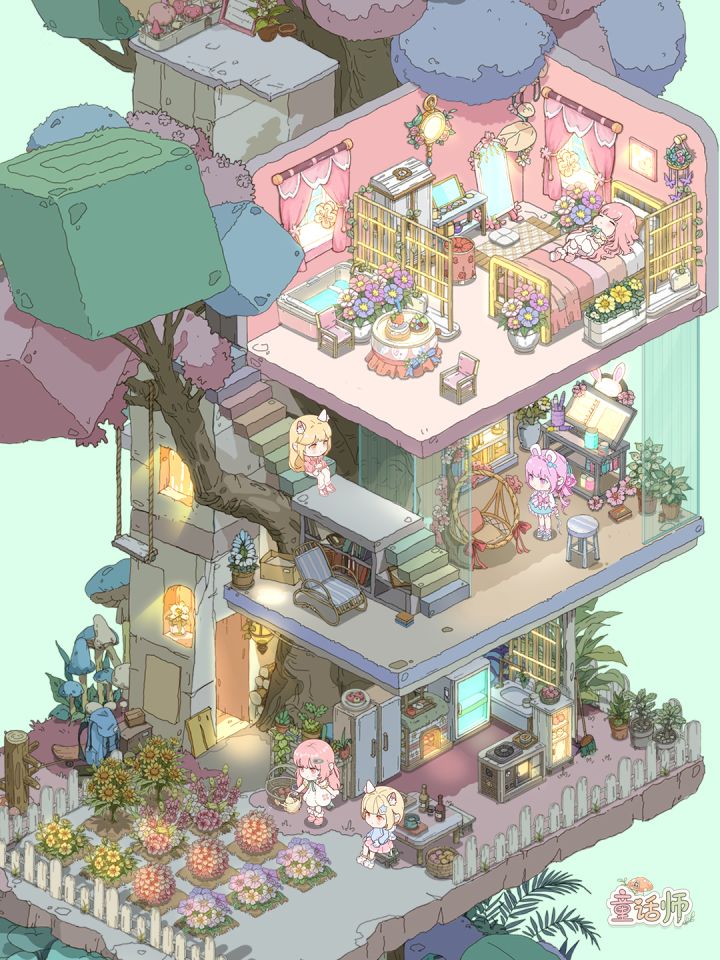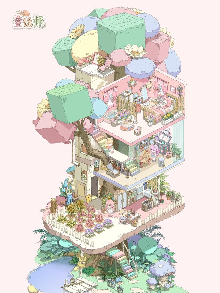 滴——童话镇永久居住证💌。谁说树屋只能是单调的木头和绳索?在这里,树🌲长出了块状叶子、软萌的颜色和三层楼的童话生活。厨房在一层,花盆组团排队晒太阳☀️;画室🎨藏在二楼,等你翻开灵感的第一页;三楼的床与泡澡池🛁,专为慵懒下午准备。住进去的感觉?大概会像躺进一颗温柔的糖🍬,慢慢融掉日常的疲惫。#童话师 #休闲游戏 #少女心游戏安利 #模拟经营 #治愈系游戏 #种田 #装修游戏