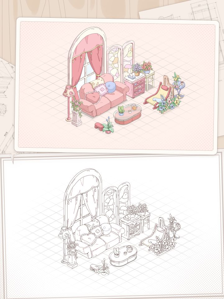 当当!今天采访了我们灵感爆炸的美术姐姐~我们造景系统的开发是集天地之灵气、日月之精华,整个团队写了好多个策划案,才敲定出来的一个模块。希望它会有足够优秀的游玩体验,同时也不失创新性。✨其中,墙体+地板装饰的组合是提供家园装修氛围的重要内容。“仔细一看,好像跟我以前玩的装修有不太一样的地方呢。”美术:“因为有【墙纸】和【墙体】的差异哦,在这里面,可以直接更换墙体,让装修能够更彻底、更自由。