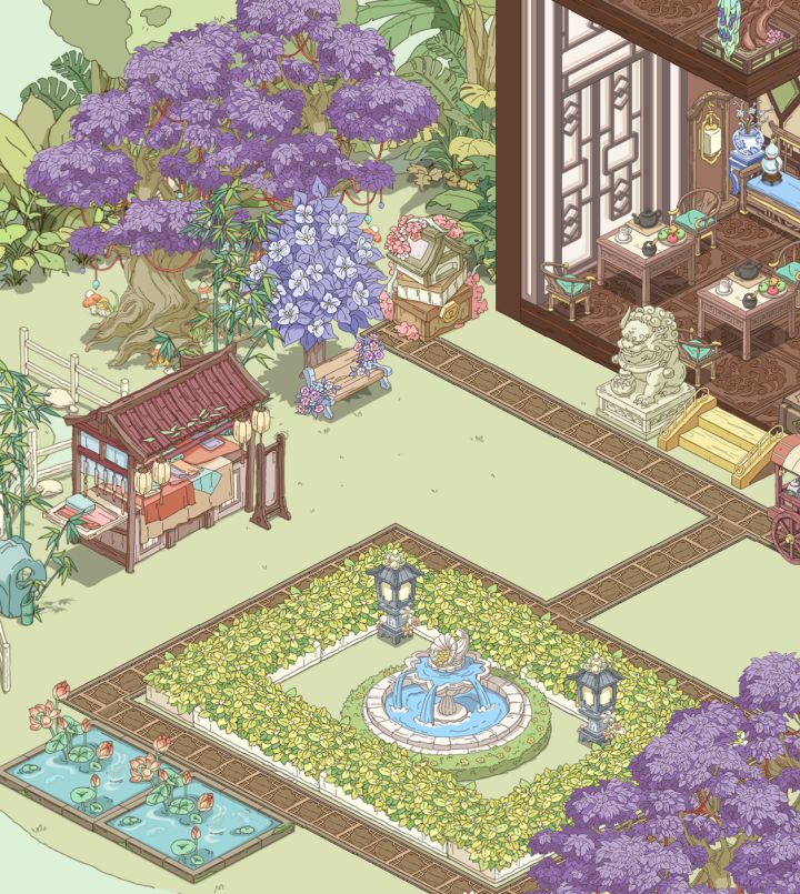 今天上线看到江南砚居的套装就眼前一亮,拿到后马不停蹄的开始装修啦~本来刚开始因为房子有点大,感觉不知道如何下手,后面在尝试中逐渐打开思路,最终完成我的中式庭院啦~既有车马相送,又有露天温泉,这怎么不算大户人家希望这种中式家具摩多摩多,城景的水榭楼台也能更多一点,超级好看的画风,超级好玩的游戏#童话师 #童话师内测 #童话师扉页测试 #装修分享