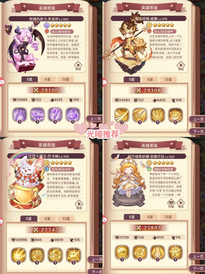 很多平民玩家抱怨资源获取太难 只要不是像全服24小时大喇叭大白兔那样 全队光 按照我的思路平民微氪也可以追上进度优先生产 全力点满研究所第一页,第二页只针对pvp有追求的玩家 。资源不多的情况下生产快等于有稳定的金币来源 有足够的狗粮 只需要集中养一两个光暗本体 其他用三系代替 不评价零氪玩全光队的行为 推荐给大家几个角色配阵容。优先级t0输出 巧克力 斩杀机制 地心及其他副本boss均可打