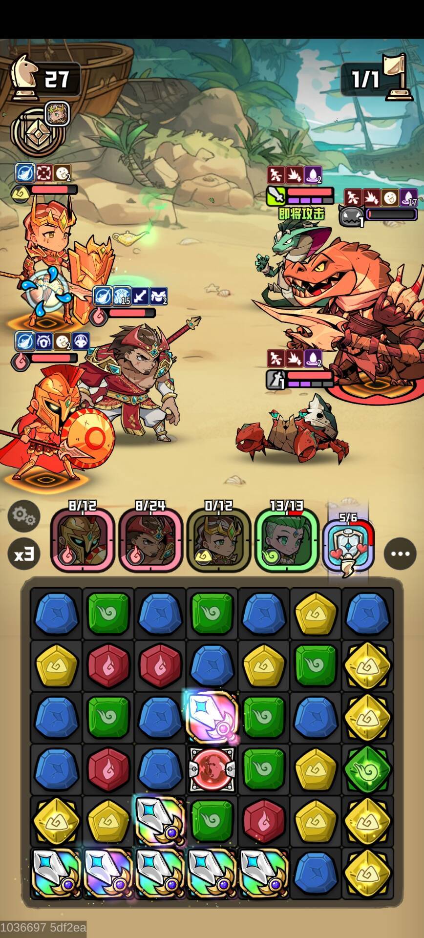 UID:1058274,昵称:消消乐新手 一、我的进度现零氪60天,刚好玩消消2个月。远古牌上半周48豆,下半周44豆,战力45W。 二、远古牌上半周1.银星刺客(1)难度:1(2)推荐阵容:前期班扬120+菲雅1+普洛斯1+绯1,中后期班扬120+普洛斯1+绯1+阿琳娜1(3)难点:造大宝剑,小怪开始进攻前保持每回合熊拍拍眩晕。(4)棋盘特点:大棋盘,有两个熊拍拍方块,在棋子