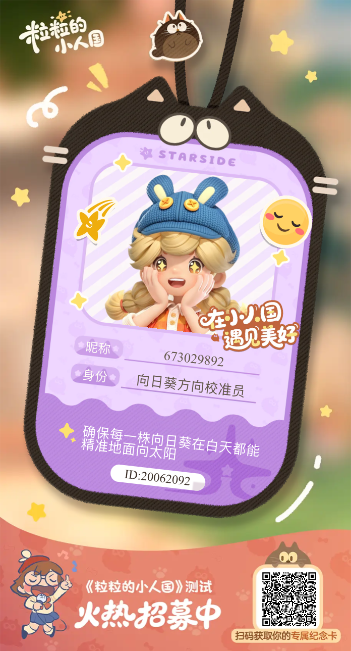 【正式申请】申请《粒粒的小人国》内测资格:愿做一名细致的微观世界共建者 尊敬的官方团队: 我是一名自9月24日游戏首曝以来便持续关注的玩家。《粒粒的小人国》以其独特的“皮克斯绘本风”美术和“微观视角探索日常”的创意,深深吸引了我。每次看到新内容发布,都让我对这个温暖、治愈的微小世界更加向往。 我为何如此期待并想参与测试? 因为我不仅是被游戏吸引,更是被其背后的理念打动: 1. 视觉与情感