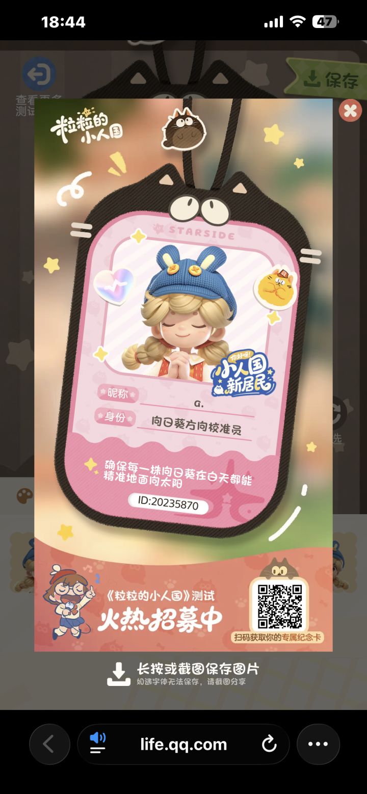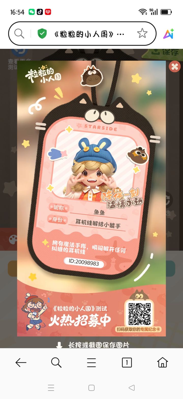 尊敬的《粒粒小人国》运营与开发团队: 您好!我怀着无比期待与喜爱的心情,郑重申请本次粒粒小人国内测资格。从第一次看到游戏的治愈画风、微观世界设定与温馨的小人生活玩法开始,我就被这款作品深深吸引,一直持续关注官方动态,每天都在期待能够早日进入这个可爱又治愈的小人世界,亲身参与建造、探索与陪伴。 我非常喜欢模拟经营、休闲养成、自由布置类游戏,平时也乐于体验各类治愈系作品,对画面细节、交互手感、
