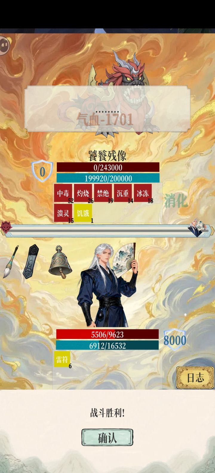 [表情_吃瓜]如果担心被秒最好带个血瓶,在混沌跟穷奇哪里喝一口。可以防止被秒,主要三分归气回扣血上限,导致从上场战斗出来是残血状态。boss技能有概率暴击,尤其是穷奇[表情_吃瓜][表情_吃瓜][表情_吃瓜] #发现好游戏
