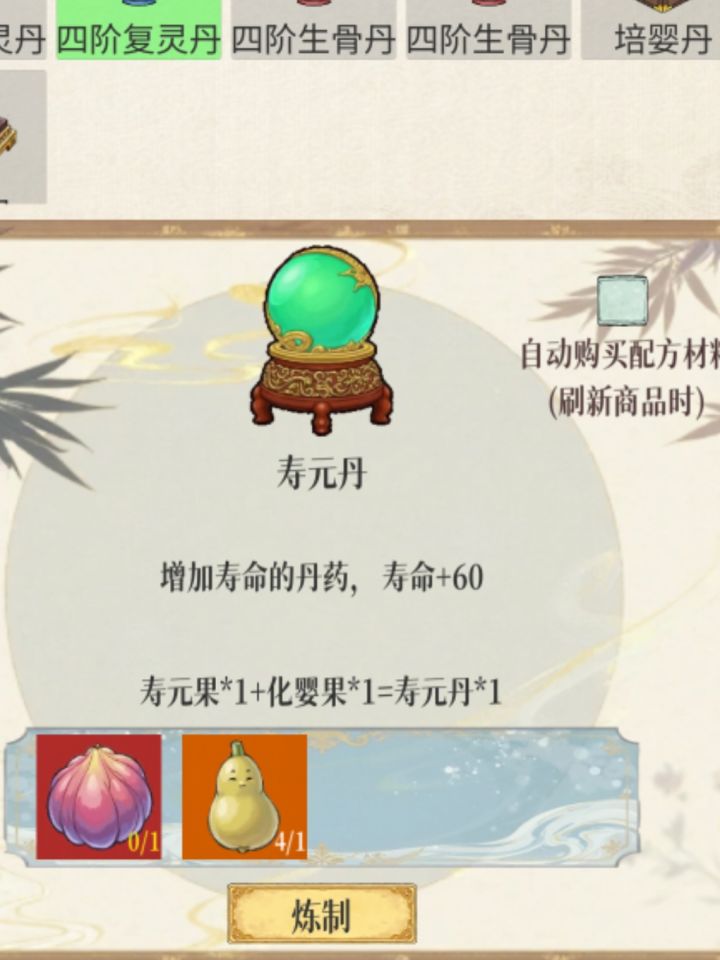 需要寿命果和化婴果在炼丹等级四级的情况下合成,激活收藏后每次撤离有概率寿命加2