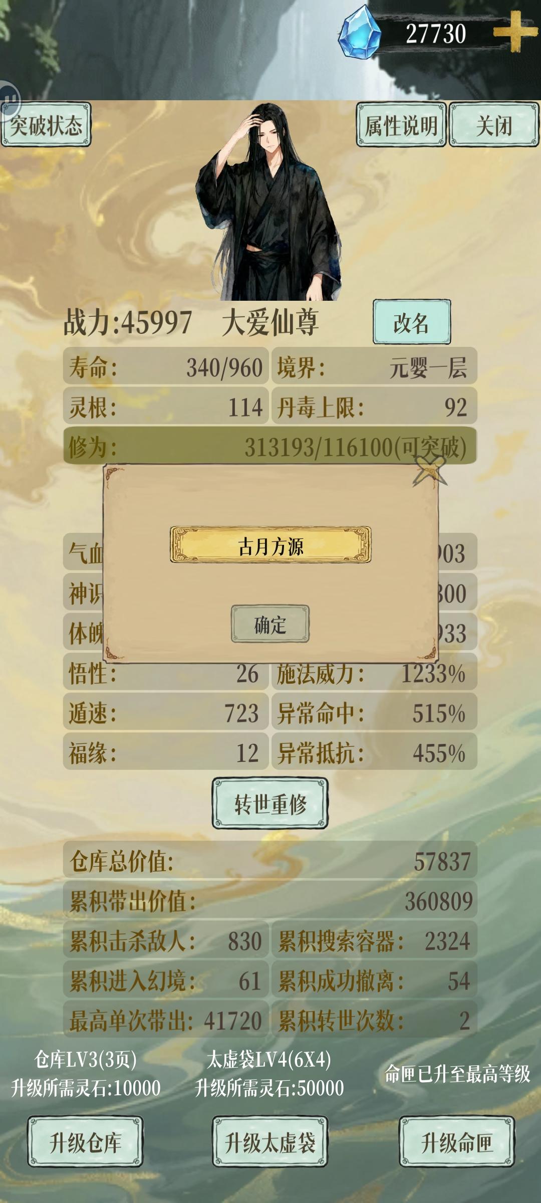 被天骄穷奇打死,看完视频回来,掉属性啊,永久掉啊,我遁速,施法速度,都掉了大几百了。是血条从两万掉到1万8才反应过来。G了啊。异常命中和抵抗也掉了大几百