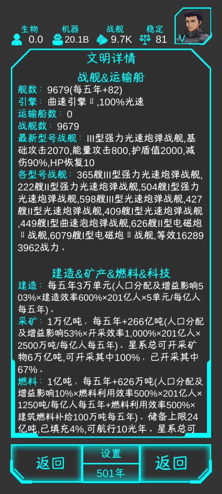 基本不需要看广告的流派(极低概率前期打架打输了,看一次),时间很充裕,战力碾压注意事项:稳定不到100时,每五年选项:选稳定度+1;遗迹只进前三次的三级遗迹(不进也行);打法思路:开局母星研究科技研究到没东西研究(主研究研究速度和机械人口的科技,不要急着研究核心科技),然后找个黑洞定居,研究满了以后造船,灭绝者到来之前已经无敌。剧本编辑#星际守护者 0基本属性:三级科技,灭绝者移速1