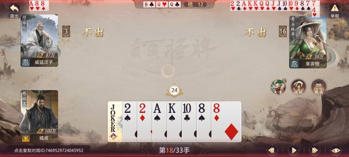 不是哥们,我这包赢的牌,我王炸完,他管不起,他直接技能弃牌然后判定他赢?啊?技能不是弃小牌,拿回大牌吗?大牌不拿了?直接赢?我王炸完,三代一对输了?他管不去开技能不拿回大牌,直接弃完牌就拉倒,就算赢了?#三国百将牌 #三国百将牌创作者征集
