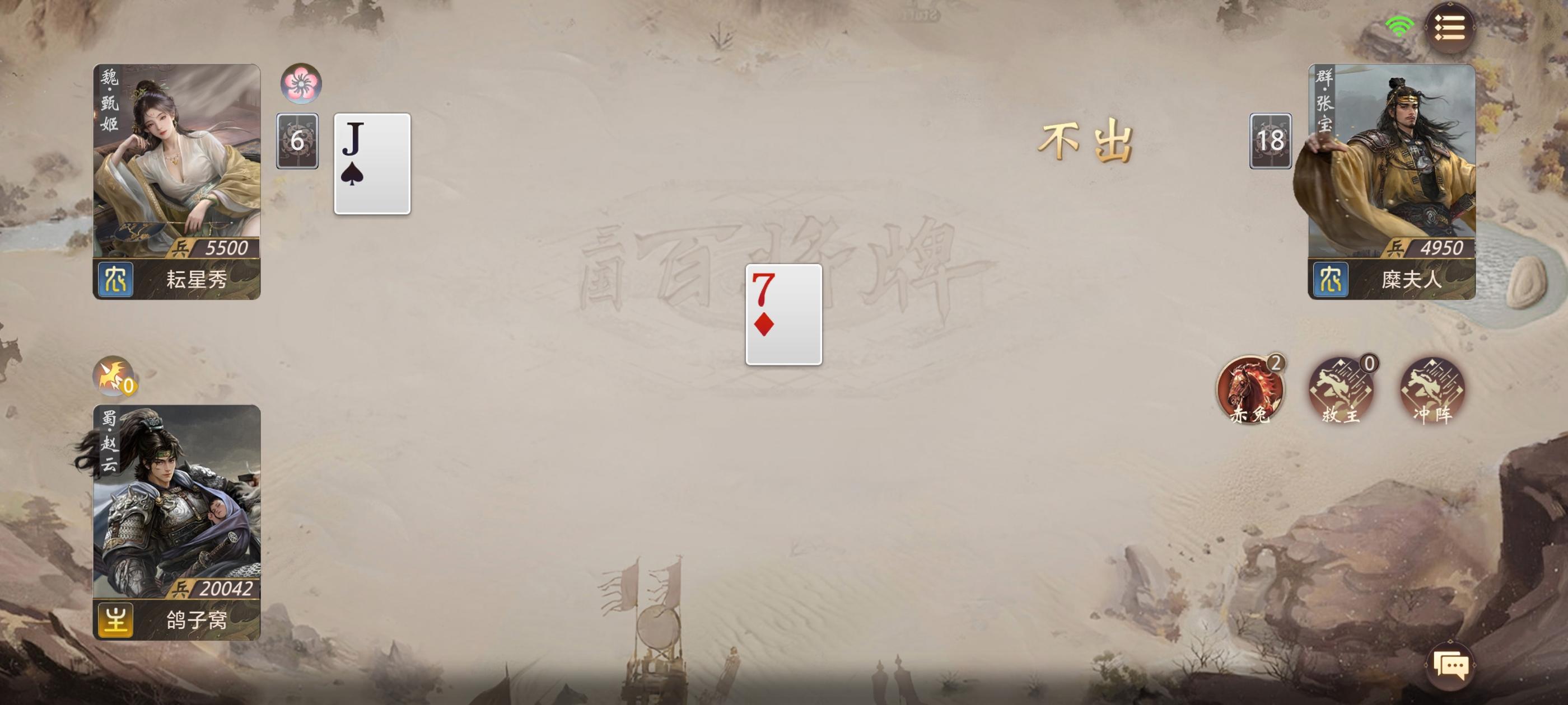 #三国百将牌 我赵云最后剩没有达成技能效果的万能牌以及十九七还有赤兔的最后一回合,出牌给我牌卡没了,我以为游戏崩了,结果是判定超时给我自动出牌了