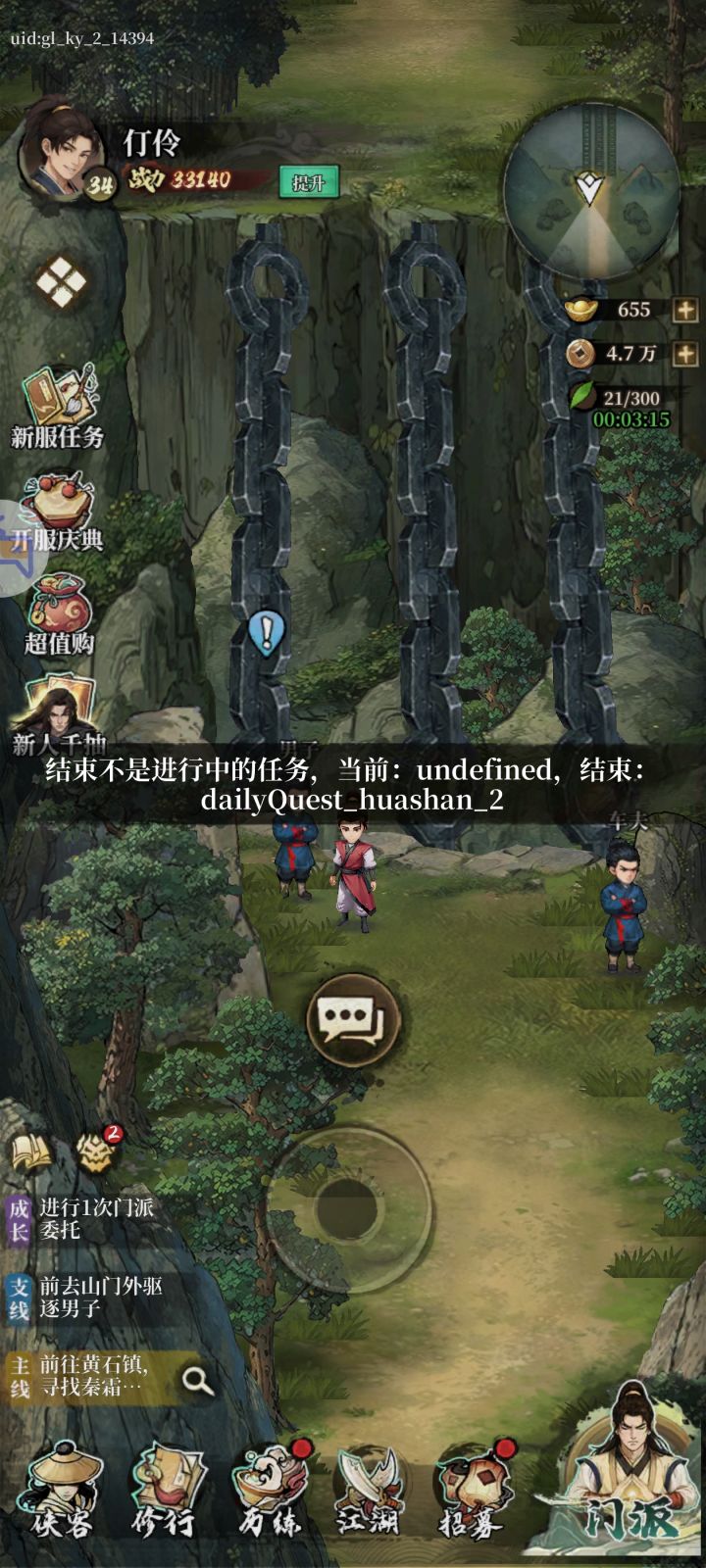 华山扫落叶任务,精力不够接任务,但是任务可以做,做完提示出错,点啥都没用了。