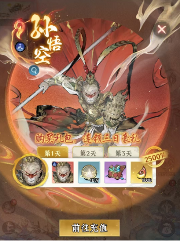 在《仙界大掌门》游戏中,适当购入礼包能大幅提升游戏体验,但是很显然游戏中的礼包价值和内容各不相同,如何购入才能保证不花冤枉钱?结合我两次测试的游戏体验,给大伙盘一盘。 首充礼包 性价比极高的游戏敲门砖,只需要充值6块即可解锁红卡孙悟空,也就是游戏中最高级的鸿蒙卡,孙悟空这张卡战力在游戏中算是T0级别,一张猴哥可保开荒无忧。 并且这个礼包并非仅仅一锤子买卖的拿张卡,连续三天都可以领取好东西,第