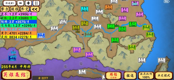 首先,刷个爆黄金快的角色(我选的袁绍) 然后,选个边境且有地势阻挡的城市(我选的云南) 再选一个你认为后期牛逼的势力(我前期选了成都刘,后面换了大皇帝孙权) 开局点市场,开四倍速,开局技能随便,建议增益或削弱(增益保证自己不会被干死,削弱就削弱你选爹旁边的那几个势力) 至于局内技能,首选至多一个城池,守城/战力增加的技能;或者增加你黄金数量的技能 然后,点满市场,水利,筑墙所,寺庙后,疯狂给你的大