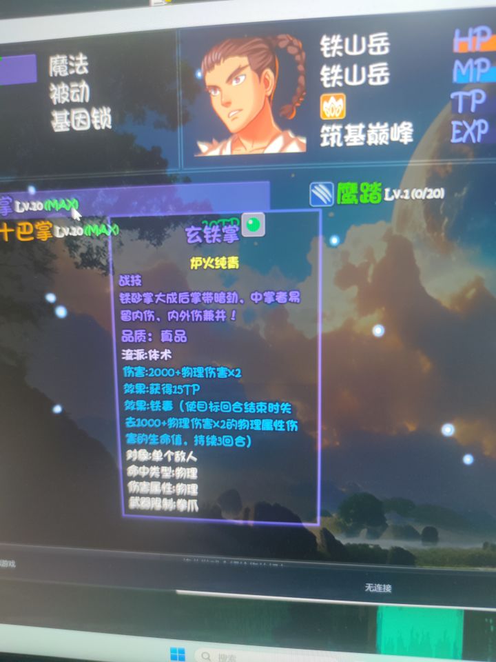 前期(玄铁掌)自带技能铁砂掌5级后升级为练铁掌黑水稀有怪可以掉落练铁砂(可有可无)随机事件筑基巅峰掉落心法玄铁神掌经dote伤害还行,回tp15 后续练巴掌挂机必备一回合算流血1w中期(鹰踏套)雪山遇到前所未有掉核心装备鹰踏套黑水稀有怪掉落鹰爪恐怖之路下面头目怪掉落鹰踏技能书优点伤害可观,启动容易暴击打禁区一动3w后期(降龙巴掌)巨煎熬前6掌级级递增tp,60tp一掌启动