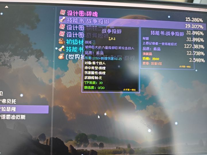 他的掉落物还是很不错的,而且这个战争投掷感觉可以组一套,伤害应该还不错。