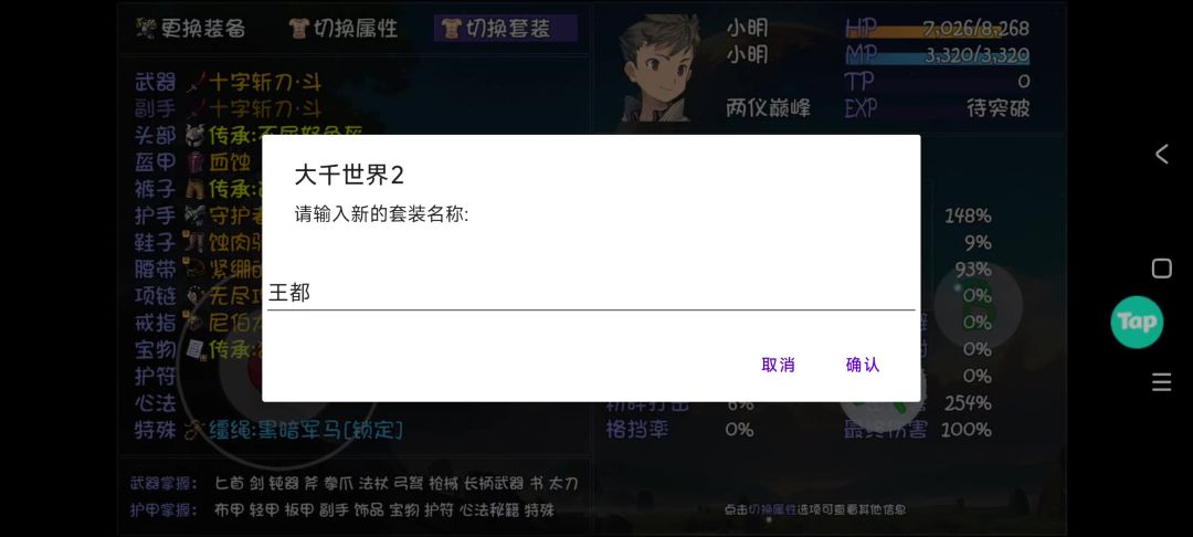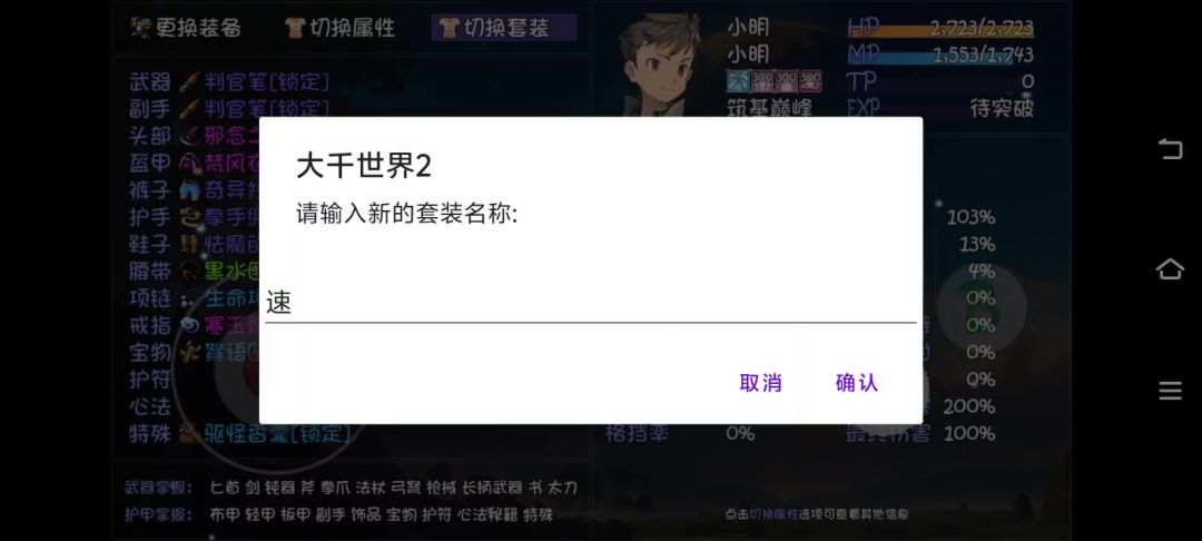 装备套装改名,然后就无法确定,也无法退出,只能重开
