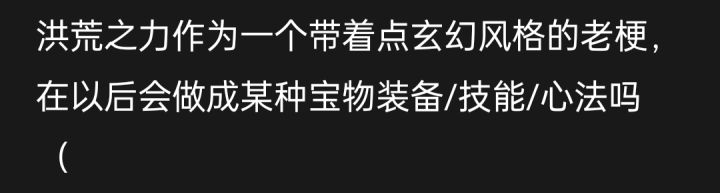 洪荒之力作为一个带着点玄幻风格的老梗,在以后会做成某种宝物装备/技能/心法吗(