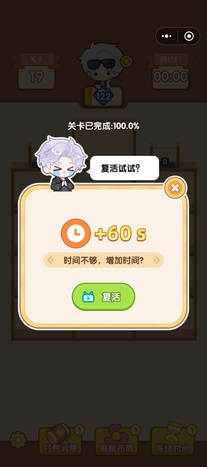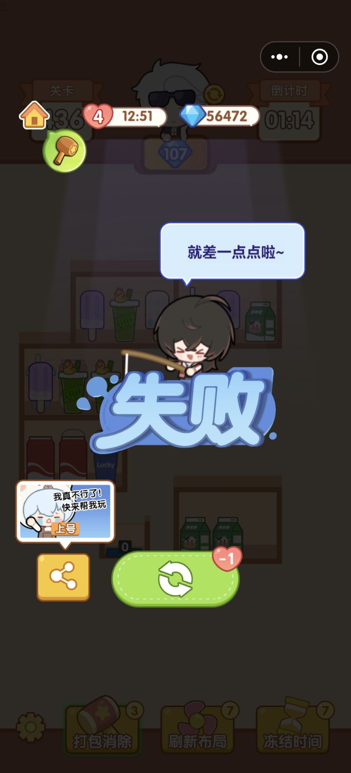 如图可见,右上角还有剩1分多钟,右下角还有空格,明显还有可以消的位置,但突然就跳出来说空位已满。但真正空位已满,挪不了的时候又不提醒。但这个时候一般可以用道具解决。如果解决不了这个bug的话,索性取消这个提醒,不要强制结束好嘛,起码我还可以自己退出重进,或用道具。
