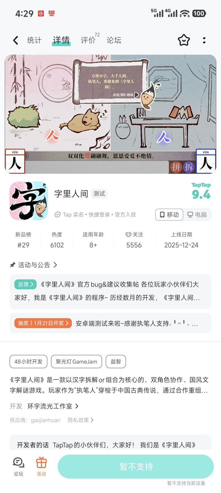 各位玩家小伙伴们大家好,我是《字里人间》的程序~历经数月的开发,《字里人间》移动端终于要上线了!我们致力于为每一位玩家提供美好的游戏体验,然而开发过程难免有所疏漏。为了方便各位反馈,我为大家建立了一个集中反馈的帖子,执笔人如果有任何bug或建议意见,都可以发布在评论区bug反馈格式:设备型号➕bug描述➕截图感谢各位的支持→ 关注我们,共游字里人间 ← 官方QQ群:231