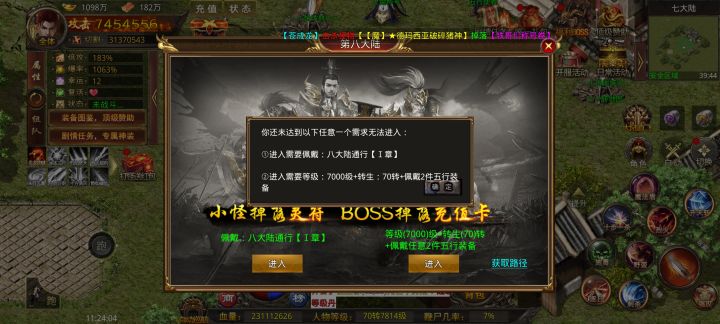 就是说不氪金我连第8大陆都进不去呗。