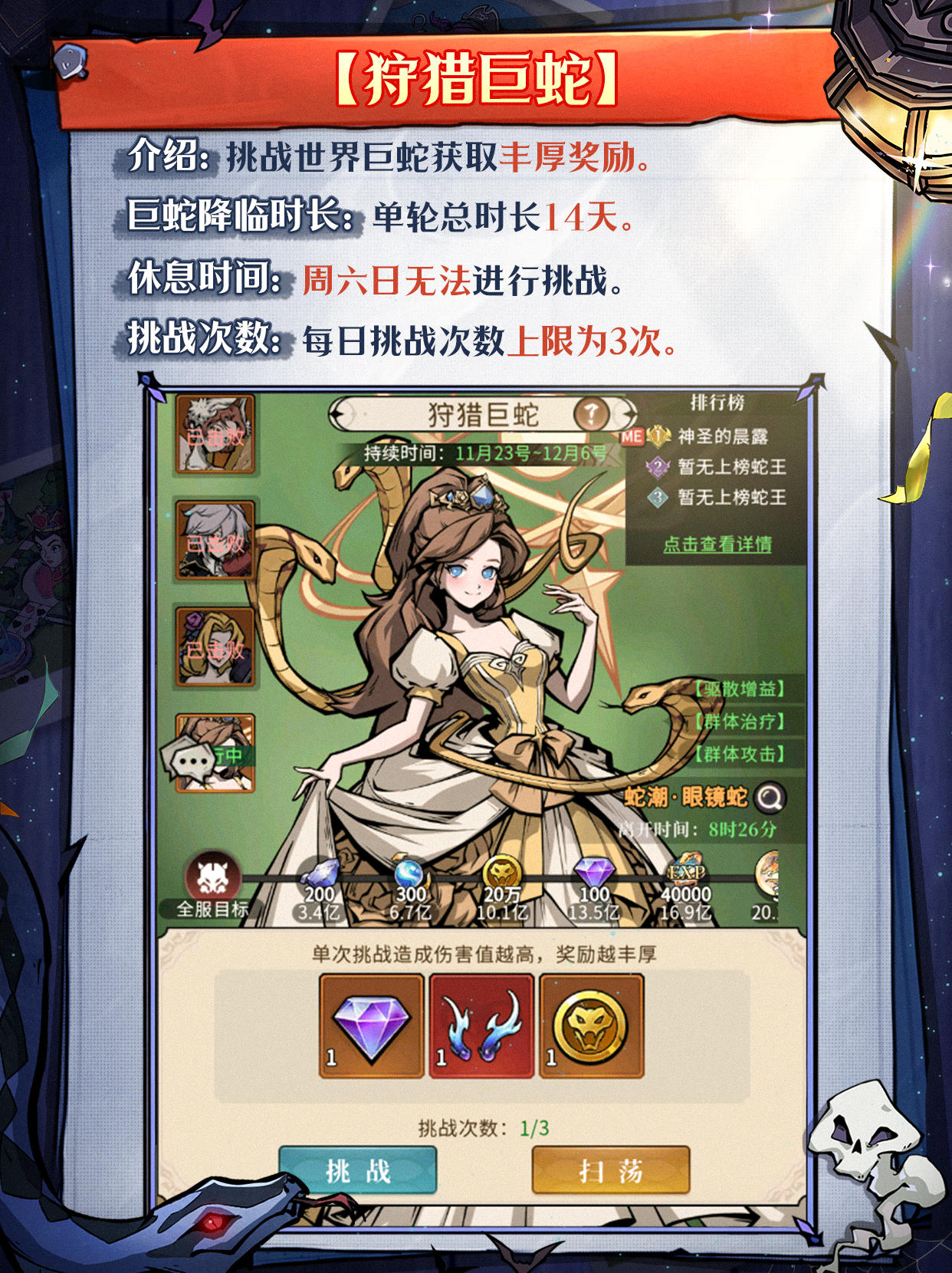 是不是经常在想,在幻灵世界里除了推图养卡,还能玩点什么?会不会枯燥?今天灵儿就来“揭秘”,这个暗黑童话世界可不是只有战斗!我们准备了整整六大特色玩法——从轻松收菜的“丰饶地牢”,到考验阵容深度的“哀嚎尖塔”,再到限时挑战的“狩猎巨蛇”……甚至还有“蛇蛇连一连”这种神奇小游戏!总之,资源、挑战、解谜、趣味,全都有。怕无聊?不存在的!