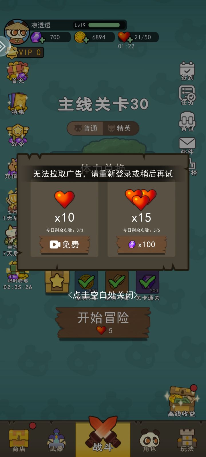 卡住了,退出重新进怎么没有继续游戏,而且还扣体力,应该优化