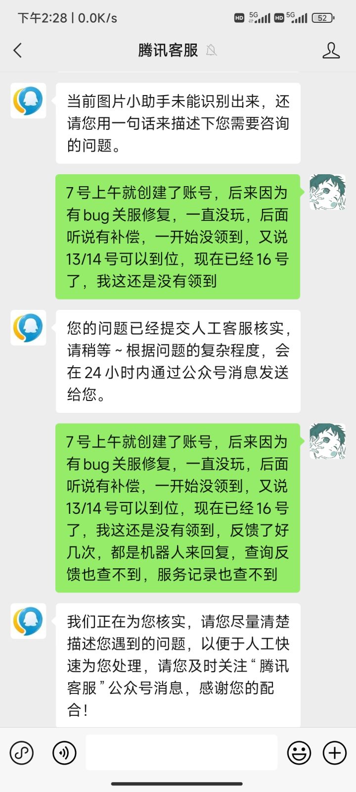 【游戏账号】:QQ号1085038615【BUG描述】:公测开服第一天进游戏的老玩家,没有收到任何补偿奖励,比如金币、钻石、跳关卡、星星唱片【使用设备】:多台换着用【网络环境】:WIFI【是否ROOT/越狱】:否【问题发现时间】:11月24日【问题发生次数】:一直【游戏版本】:当前最新版本【截图&录屏】: