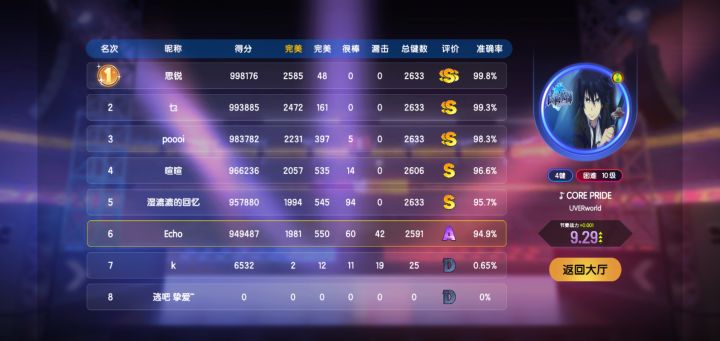 最后的几个键漏击了,没有弹出全部连击,结算界面漏击显示是0
