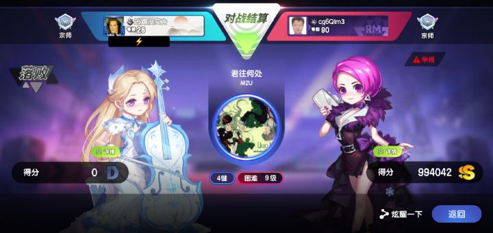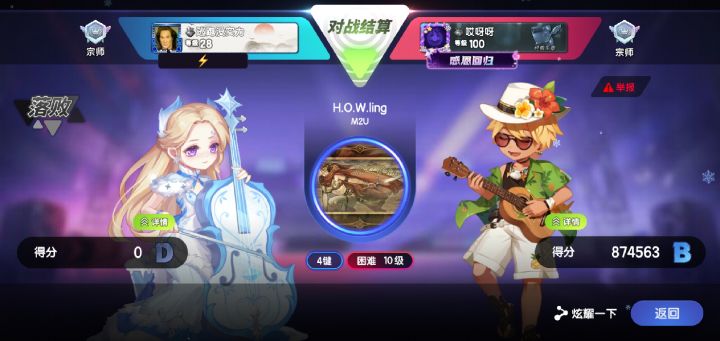 左边这张,在选歌页面就卡在同步中,同步完之后就卡在了选歌界面,然后就一直黑屏,我寻思我网也不差呀,而且出现了不止一局,重进之后查战绩直接判我输第二张就更奇怪了,我清楚记得我打完了这曲子,弹出来个弹窗说我这曲子分数不对,重新来一次,点我确定查战绩又发现我直接判定为失败,局内显示我分数比他高1400,结束我分数直接归零还有打歌的时候会突然卡屏,但是我不能正常操作,曲子还在继续放,卡完之后我血条没了