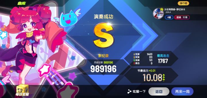 只只能说这首歌的鼓点实在是太带感了,我直接花100节奏水晶拿下! 杂音挺多的,因为作者本人在国庆做了个美甲,敲屏幕的声音被录进去了,担待担待。可以把声音开大一点点,音乐声音有点小