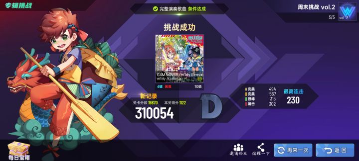 各位演奏家好呀! 在“终极测试”中,我们为大家带来了全新玩法——《新曲实验室》,这里每天都会为演奏家们带来一首新的歌曲,TA是你的菜吗?快来说说您对今天所更新歌曲的想法吧,每一位演奏家的想法都对我们至关重要哦!参与方式:“终极测试”期间,演奏家按照以下格式,发表您对今日新曲的看法即可~对歌曲的评价:对谱面的评价: 参与奖励与评选方式:我们每日发布活动的24小时后,会在评论区选出1名评价最出