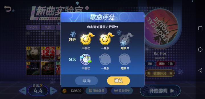我觉得,既然官方知道玩家成分很复杂,喜欢的歌曲也截然不同,下期新曲实验室就换自己上一期打了高分的歌曲(打三分的歌曲),而不是全体玩家打高分的歌曲,并且如果本期歌曲没有喜欢的就可以把券留下,行吧?目前我观察新曲实验室有这样的现象:谱面排行被听感排行带偏。我想很多以谱面为主要游玩动机的玩家都会发现这一点。我个人虽然以听感为主,但我也会在意谱面,认为谱面的“好玩”程度与谱面难度成正相关。另外我期待谱面有