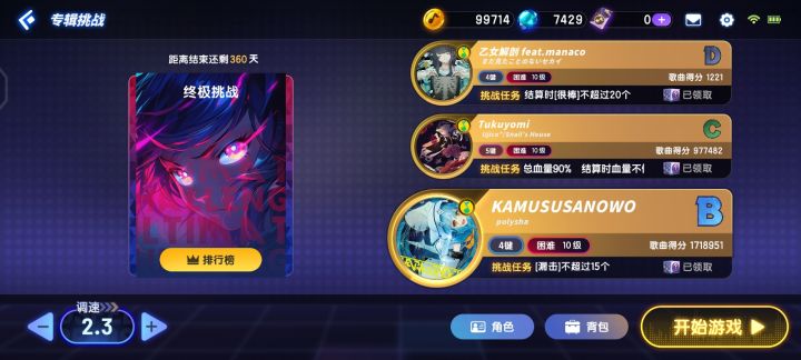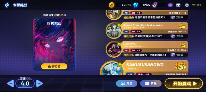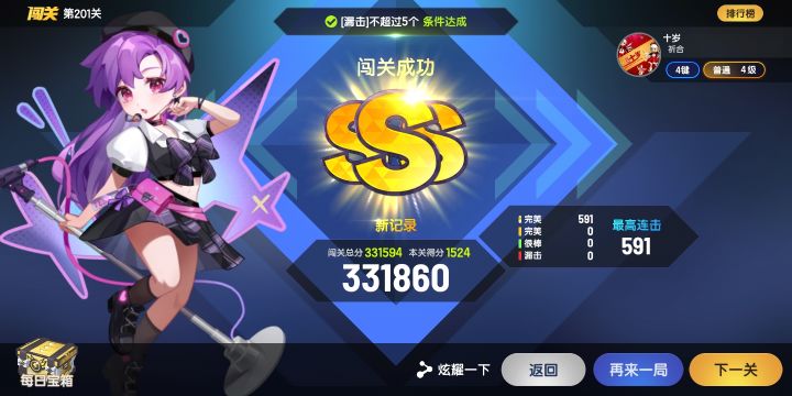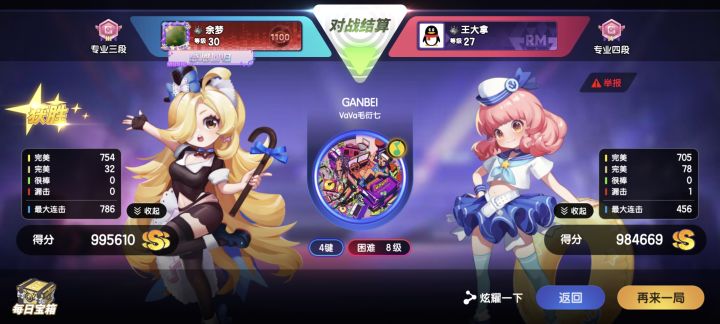 萌新排位日常~p1-4然后p5就是分享一下我怎么过的吧(感觉没有人会注意我的闪电纹身)乙女解剖挂不死鸟 下一首我是卡黄金时间+卡血 因为有个鹊桥仙子嘛 卡复活血量就行重点!最后一个!四分钟4k3dan曲(不知道是不是)建议是开二速啊 我二速以下读谱困难了 然后我是带的沙滩歌手(1级)+12漏 因为我看了我主要问题出在长条 我想卡黑成功不了或者是没接完提前松手 我吐了 然后经过了30次以后我成功