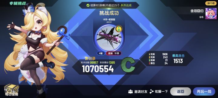 老粉回归,我还是很不理解为什么好多奖励里面都是歌曲,歌曲个人感觉可以改成成就吧,就是闯关多少关可以获得,或者专辑里面,放在活动里面就感觉emmmm,辛辛苦苦做的任务,结奖励是一首歌,还是挺不理解的,而且老角色也不能用钻石金币买了,还挺那个的,打击感包括音乐卡点也感觉都差了点,好像没以前那么能卡的上点了,建议改一下,还有歌曲的话也都是以前的老歌了,近几年的新歌很少,而且都不太好听的样子,可能是版权问