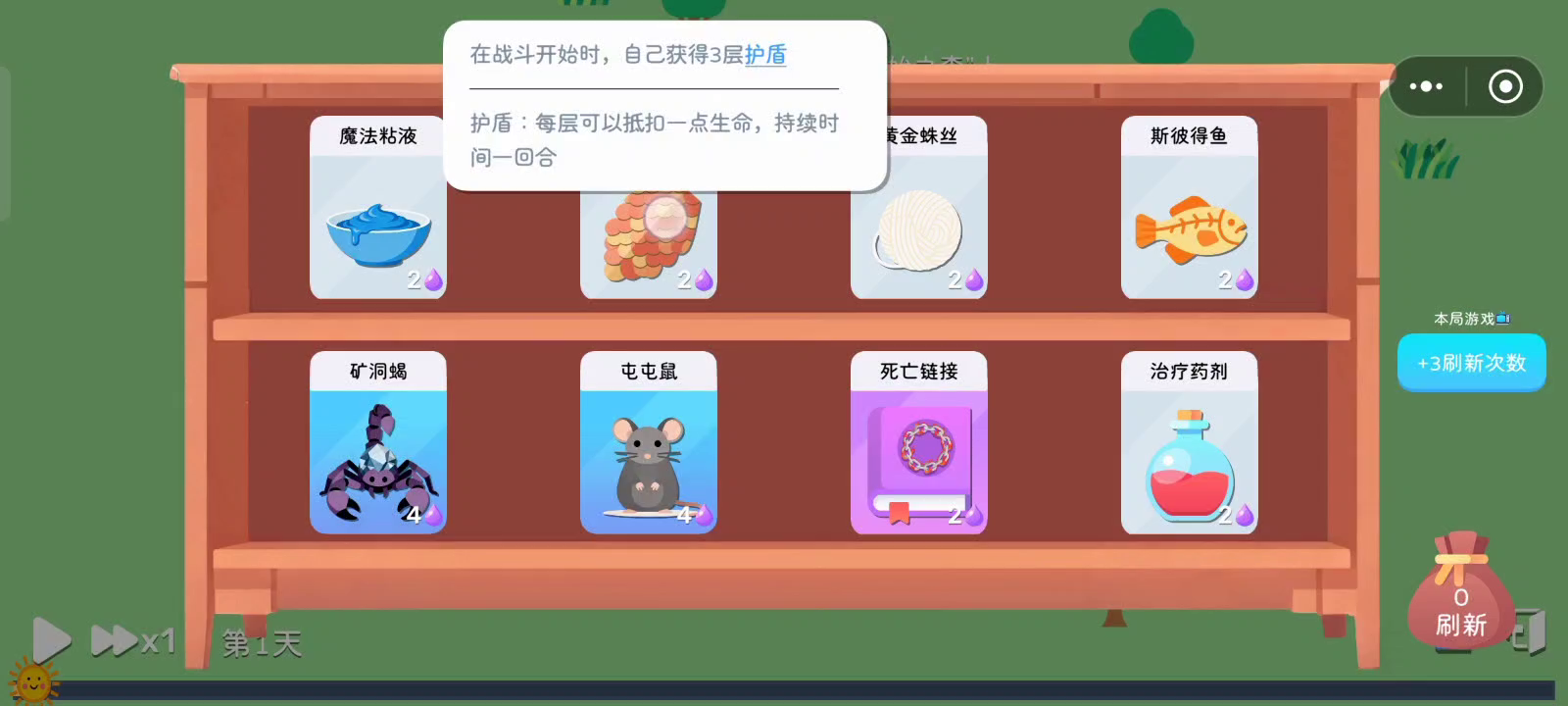 还是变形史莱姆,这回买了点物理攻击。接下来无尽关卡再改善一下技能搭配,看看能活多少天。
