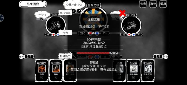 三常侍出现了bug 现在只要击杀中间的就会结束 不会触发技能的唤醒然后这个全视之眼的限制有点菜过头 只能说它叠流血对无限的限制没有梦行无限叠免疫的速度快 升级选启迪和智力 多拿几张精神抵抗 一张就能叠七八层到十几层免疫 如果不是它死了 我还能接着叠