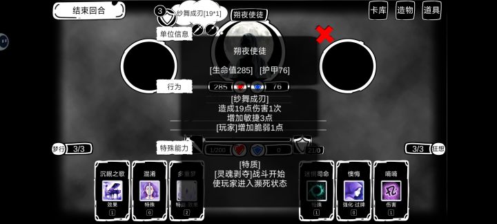 无限模式加个主动放弃吧 想进结算还得找朔夜使徒幻梦真的是无敌卡组 再配个可以无限叠兴奋打输出的狂想 怪都活不过第一回合反馈两个bug第一个:手卡摸到超过5张以后进入下一个回合,会导致这个回合摸的牌被放到下面,并且最大摸到8-10张的情况进下一回合摸牌会变成2-0张,换言之摸到10张以后就算用掉,下一个回合这一侧也无法摸到牌第二个:无限模式可以通过大退游戏来通关。刚开无限模式时手欠把游戏关了