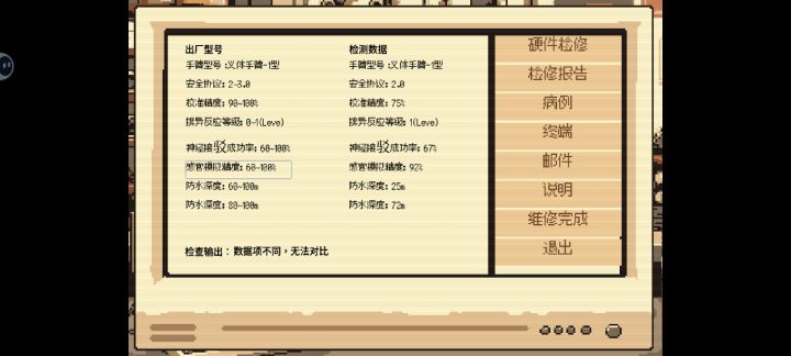 义体手臂,[检修报告]和[病例]都显示两个防水深度,都删除后看[终端]就一个校准精度一个防水深度了