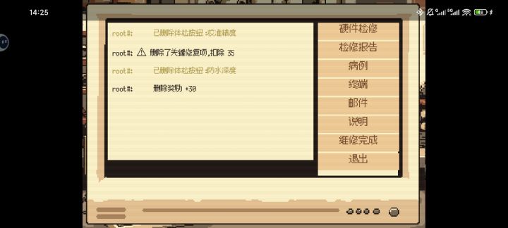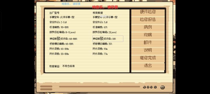 游戏画风和玩法都很好,就是人物对话情况太少,只要是一个部件出问题人物不一样对话都是一样的,,,希望可以增加对话内容;玩法很好但是可以检测的内容(部件)太少,很快就记住玩腻了,希望可以增加检测的种类,再多一些其他玩法,比如说腿部零件坏了可以让玩家拼装一下这类的(类似于拼图)希望这个游戏越来越厉害👍🏻