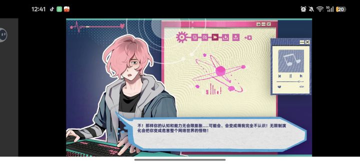 有时候会出现这样电子雪花屏幕 感觉文本阅读的时候有点头晕如果是特意为之的效果希望可以让文本框区域正常清晰我现在有点晕字了()然后左上角一边心电图一边爱心这个黄条代表的是什么意思呀?
