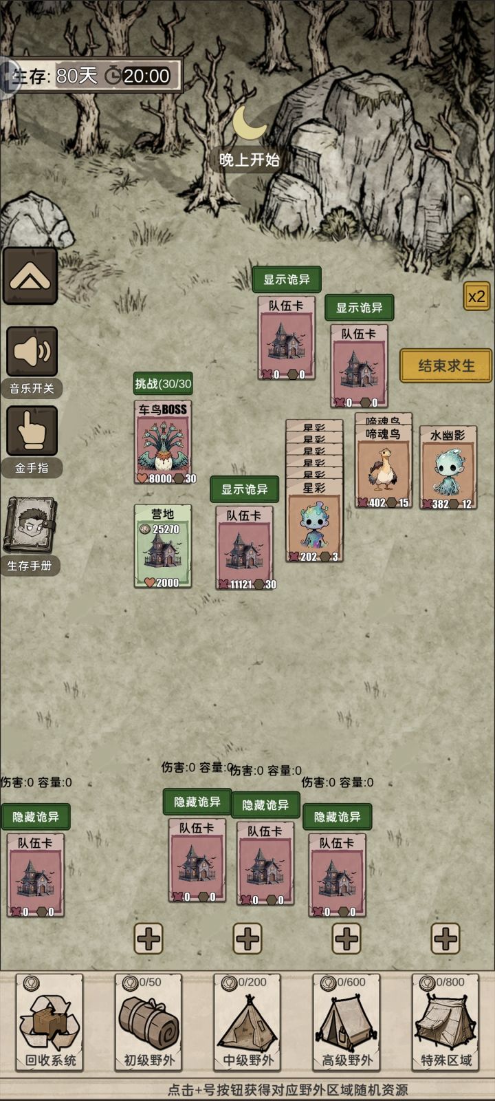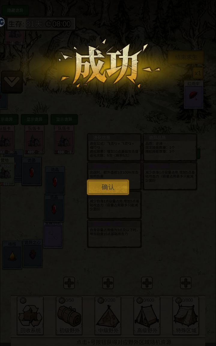 终于达成。要点就是诡币都攒着刷高级野外。初级和中级野外凑够过关队伍后就不要点,攒好诡币第10天一定点中级第20天一定点高级。这期间不要做任何进化。诡核有限就做满红雨伞再考虑其他。第29天晚上打架的时候点暂停。第30天一直刷高级野外(诡晶不够就回收阿布和龙虫),飞灵+进化一次的水幽影(选12容量的进化)+木守灵多足壶凑一凑,队伍能到3000攻30容量。只有飞灵队伍能达到这个要求其他任