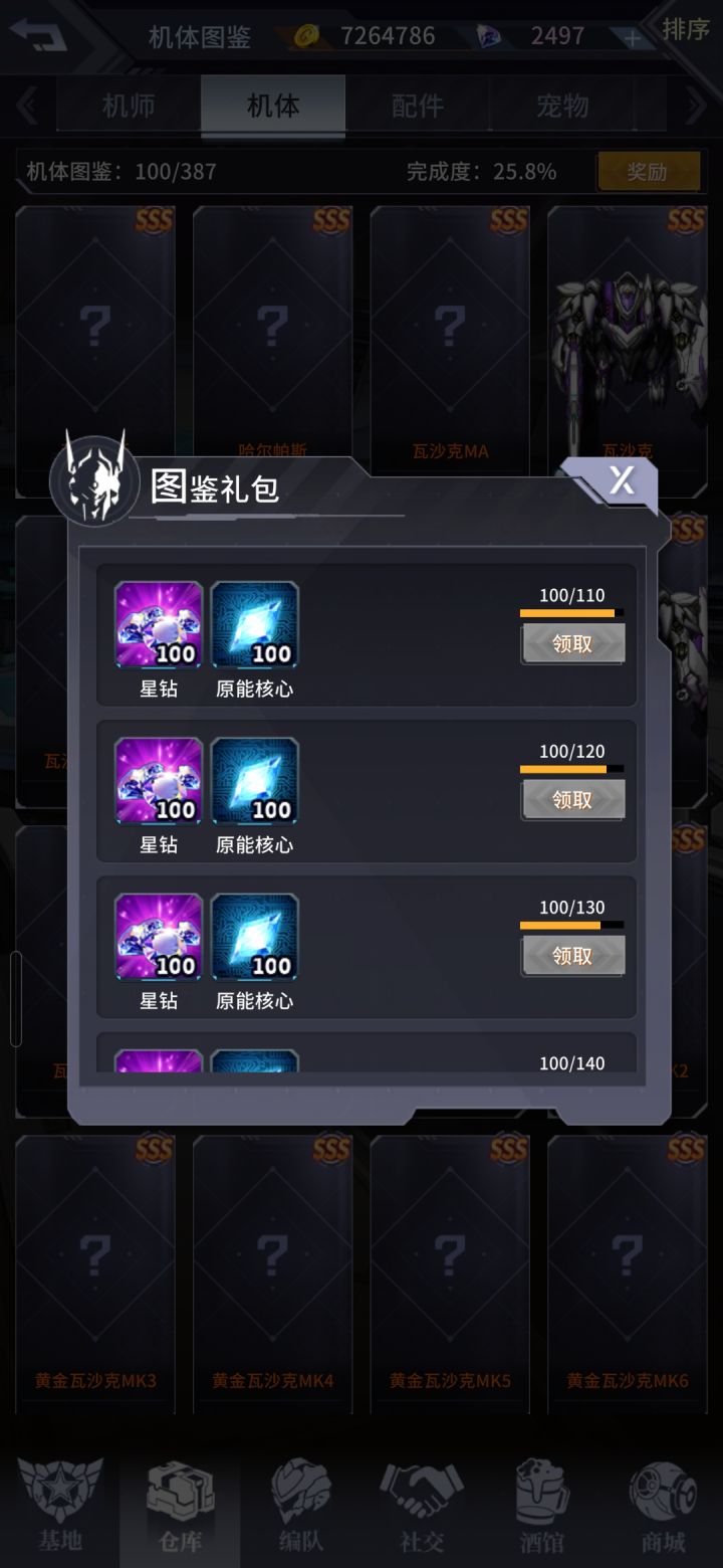 机体图鉴达到100个,可以领取葵博士,但是领完后仓库里没有