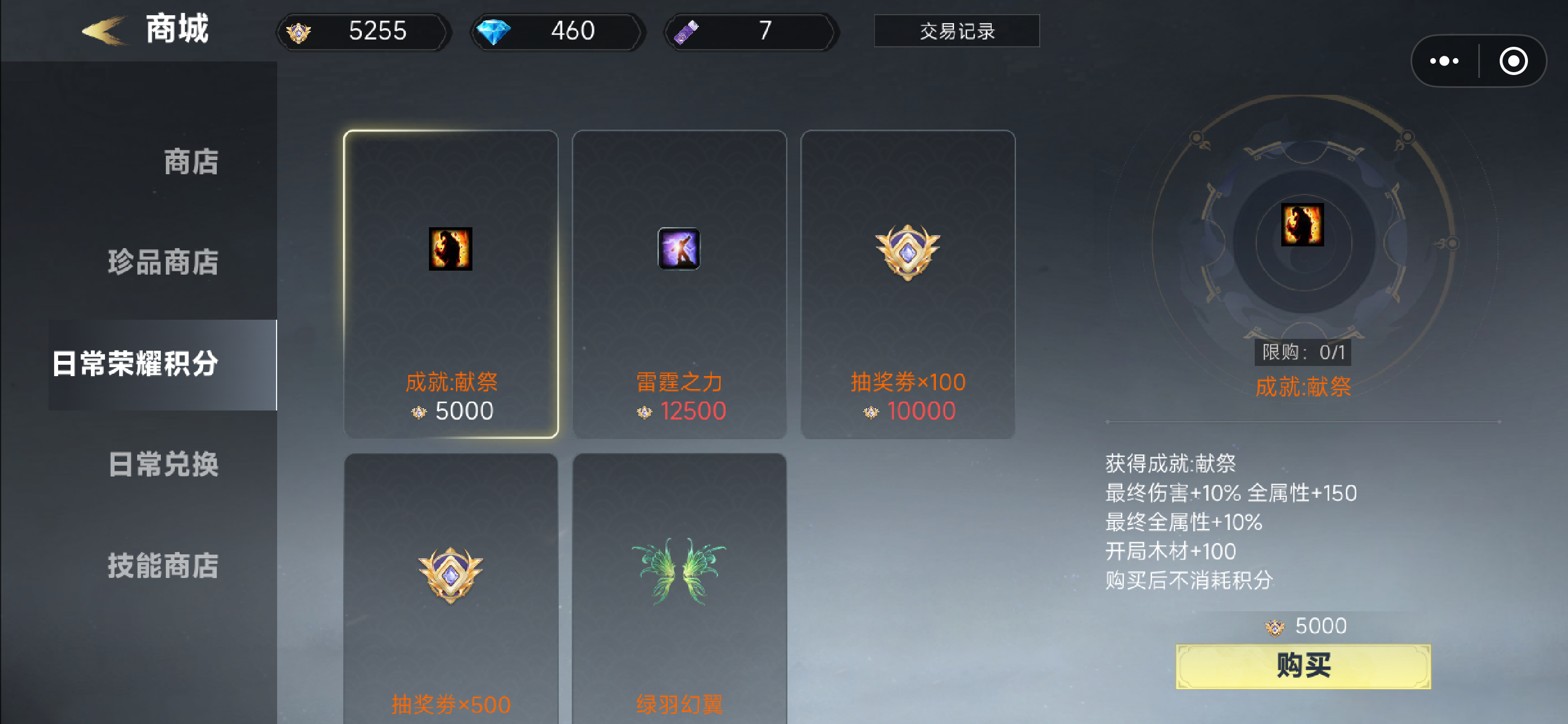 签到🉑兑换献祭了价值500元的属性成就