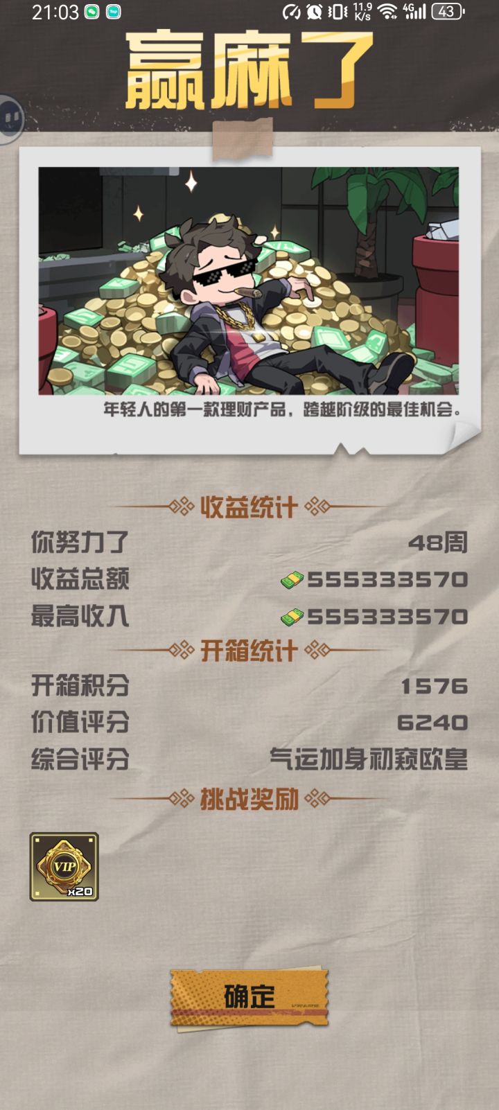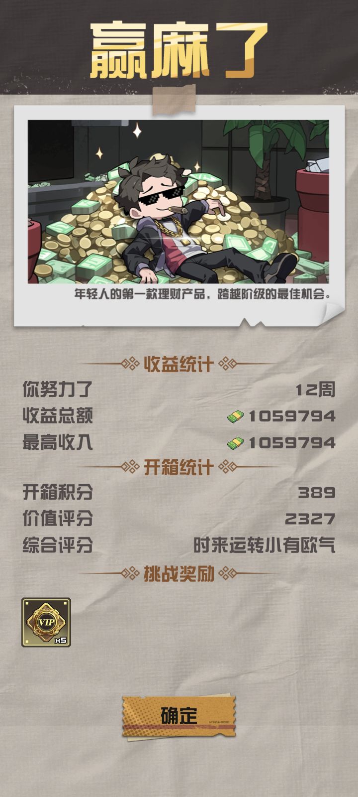 这个流派是最轮椅,最不动脑的。我自己推理出来的,没想到已经有人开发出来了。那我就具体讲讲:选:顶级藏家,额外积分,箱上加箱,超级幸运,工业升级,开箱红利,营销手段。这个模式主要靠额外积分,工业升级,箱上加箱这三个无限叠积分,抽宝箱。用顶级藏家,就是存“龙狙”叠收益,再用超级幸运保下限。开箱红利和营销手段是次要的可换。这个打法可以随便玩,只是费时
