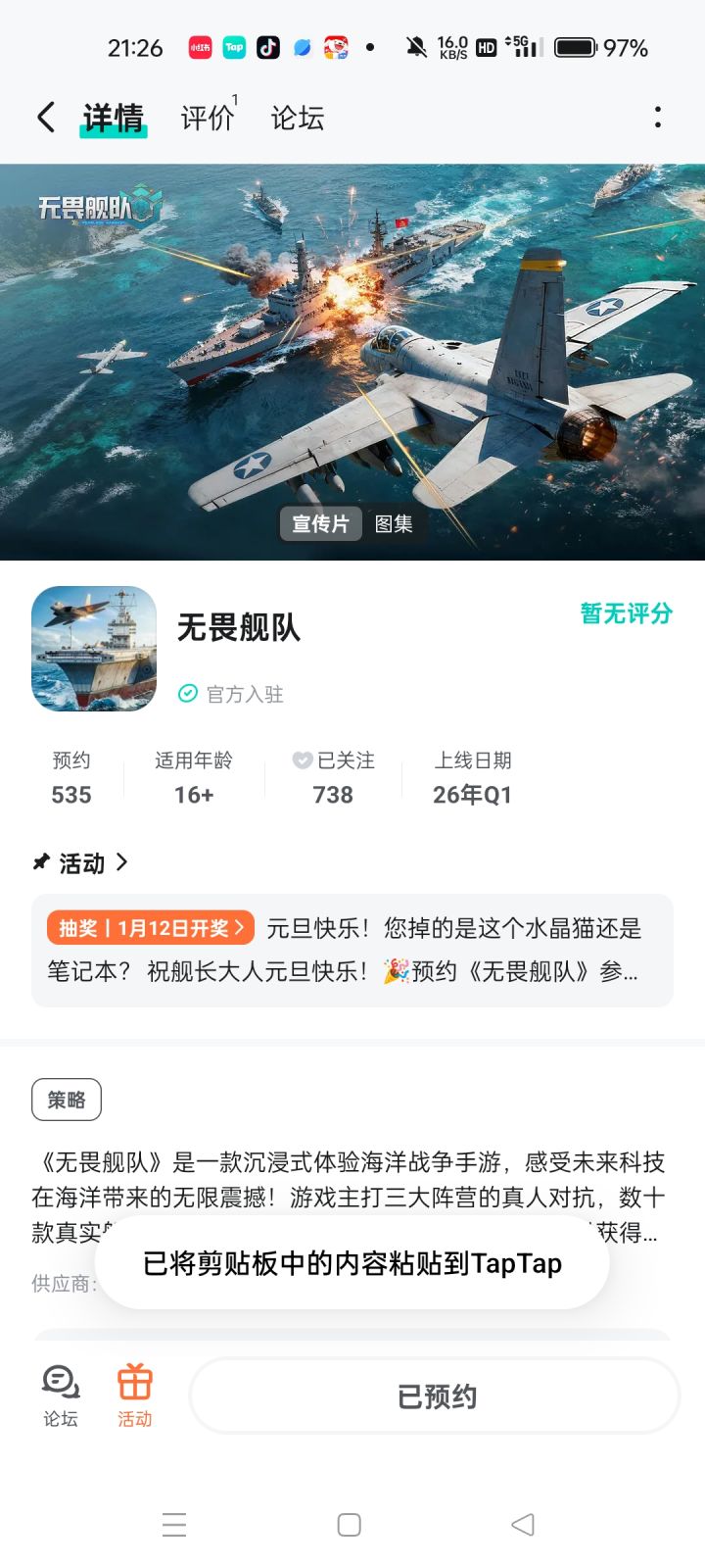 致无畏舰队:愿星辰大海皆有归途 已经预约好《无畏舰队》啦,新的一年,愿这款游戏能带着我们的冒险梦,驶向更辽阔的星辰大海! 期待游戏能解锁更多风格迥异的星际战舰,每一艘都有专属的技能和故事线,让我们能亲手打造独一无二的舰队;也盼着能开放跨服星际联盟玩法,和来自不同星域的玩家组队,一起探索未知的星球、对抗星际巨兽,在宇宙里留下属于我们的无畏传说。 另外希望优化战舰操作的流畅度,让星际对战的