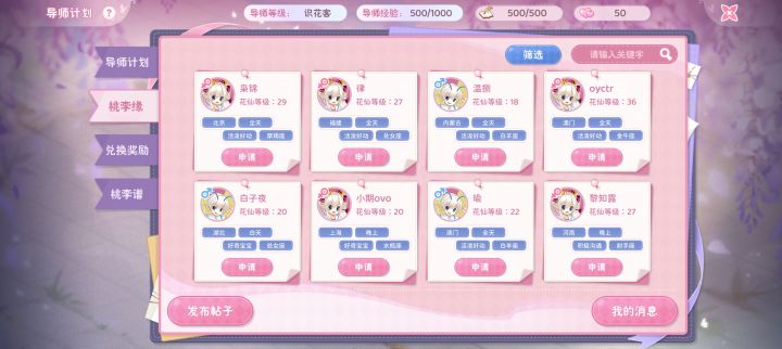 #小花仙拉贝尔之约 #小花仙公测定档4月3日 10号之前还可以有翻页的功能,10号更新后翻页功能直接消失,我还得靠刷新才能刷页面,这个导师计划你们10号更新的时候,难道就没有反馈一下我们的意见吗?直接加ID不是最好的办法。你一个一个在那点,压根就没有人理你!怎么加师傅?怎么加徒弟?依旧在这个页面里面加你,哪怕有人去加你好友了,你根本找不到他这个导师在哪里?这个徒弟在哪里?你还得在这个页面里面加。