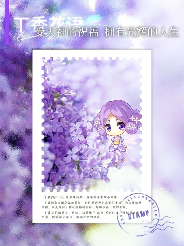 每周一期,带你认识拉贝尔大陆上,那些温柔又特别的花精灵王。🌿 本期精灵王:丁香花精灵王丨百结丁香:是木犀科的一属落叶灌木或小乔木。丁香拥有天国之花的美誉。也许是因为它高贵的香味,自古就倍受珍视。凡是受到丁香花祝福的花仙,都将获得一生的幸福。丁香花精灵王:百结,初登场于,珠宝系列任务。百结具有光的力量,能够净化邪气,驱逐心中的黑暗。#小花仙 #小花仙互通版 #小花仙拉贝尔之约 #重回小花