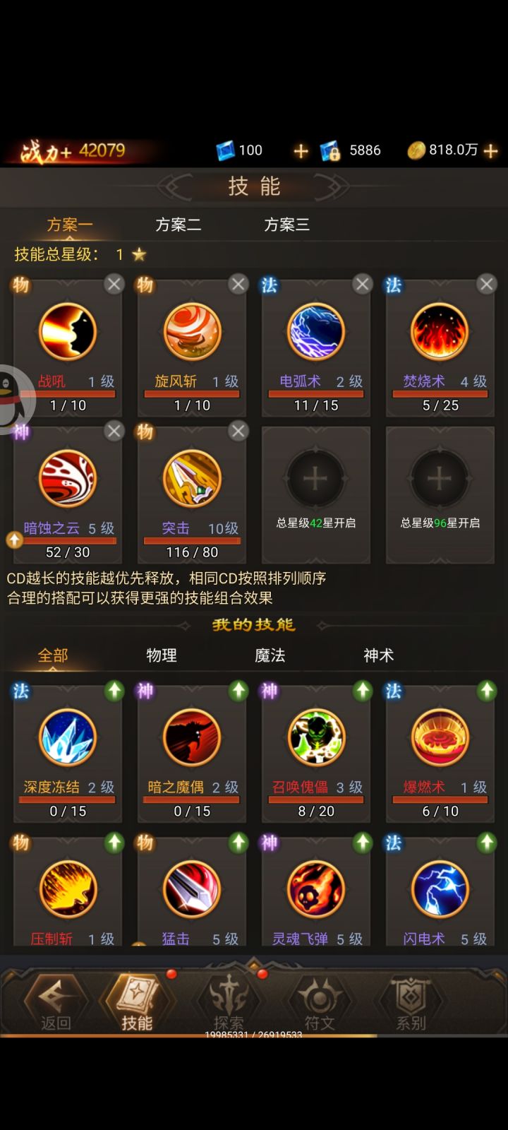 游戏为放置挂机,三个职业,但是技能都可以学,取决自己做三个职业期中哪个路线,没个职业根据圣物和符文有分为多个分支,比如走火法或冰法,要带对应技能和符文,以及神器要选火和毒加成,其他职业也是一样。 游戏托管非常舒服,完全就是上班族最爱,玩的比较久,游戏经验也很多,所以写个攻略帮助新人 1、游戏前期BOSS一个都不要放过,掉落强化石和低级红装(开图鉴),也可以上交易卖掉,低级的主要是开图签。 2