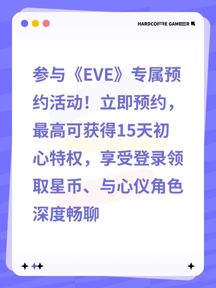参与《EVE》专属预约活动!立即预约,最高可获得15天初心特权,享受登录领取星币、与心仪角色深度畅聊、专属音频通话及更多互动机会!点击链接,回应那份为你而设的邂逅邀请。https://eve.natureselect.tech/?code=VNTY823O