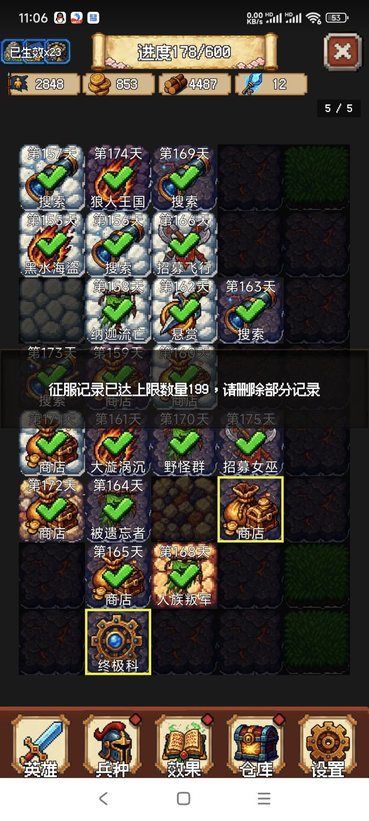 如题,探索记录能不能出个“全选”一起删除,像图一那样每翻一个就出一条“已满”的提示很烦的,然而,探索记录一条一条删除更烦。