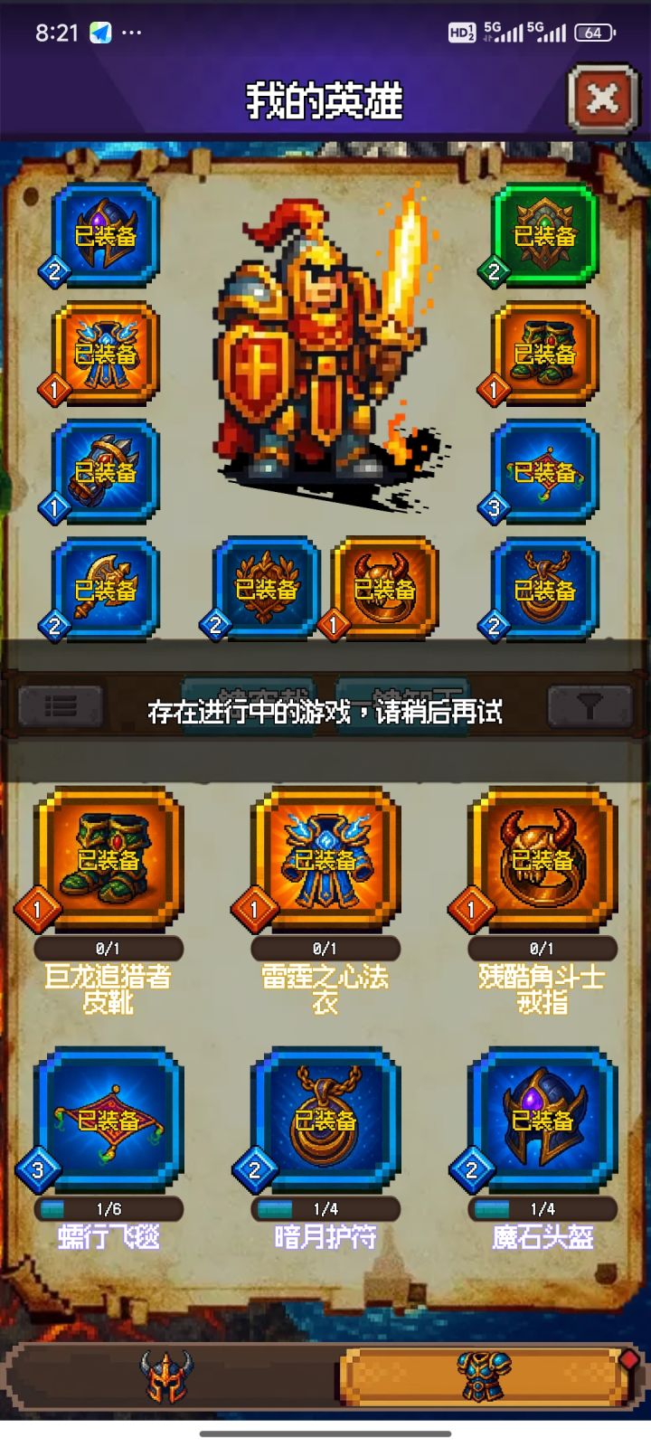 存在进行中的游戏,请稍后再试?这是服务器崩了?换装备,和强化装备时遇到的。